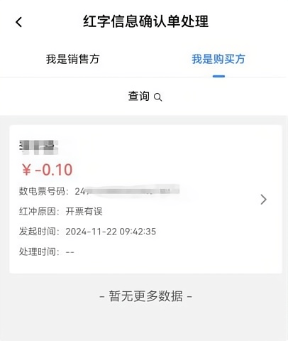 第四步:购买方登录账号,在【我要办税】-【发票使用】-【红字发票代开】-【代开红字信息确认单处理】-【我是购买方】功能点击对应记录进行确认。确认后提交税务机关审批,审批通过后才红冲成功,可以在【我要办税】-【发票使用】-【发票代开红冲】-【代开红字发票记录】查看开具成功的红字发票。