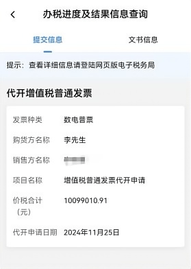 提交代开蓝字发票申请后待审核的发票,如果想要撤回申请,可以通过网页端电子税务局的【我要查询】-【涉税查询】-【办税进度及结果信息查询】功能操作,电子税务局APP暂不支持。