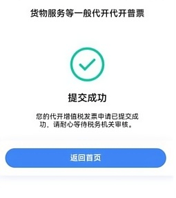 提交成功后页面提示需要等待税务人员审批,审批通过后才红冲成功,可以在【我要办税】-【发票使用】-【发票代开红冲】-【代开红字发票记录】查看开具成功的红字发票。